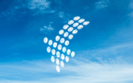 An asphalt road with an arrow painted on it symbolizes growth, development and the path to success.