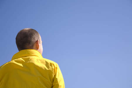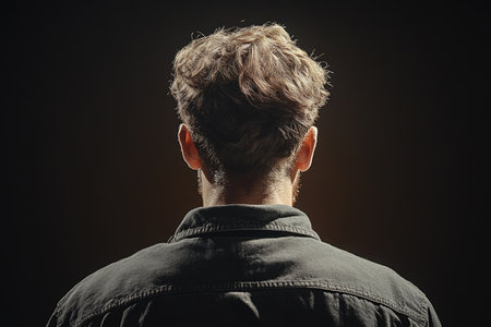 Solitude in Shadows: The Back View of a Bald Man in Contemplation
