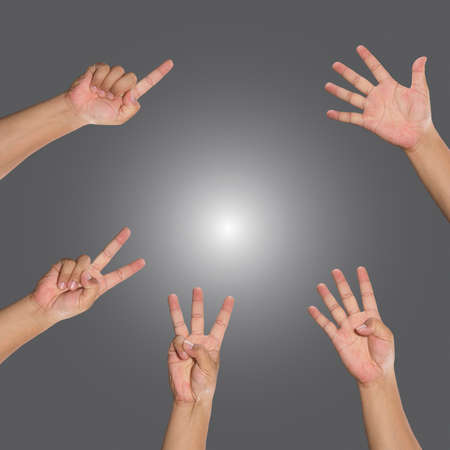 One to five fingers count signs isolated over gray background