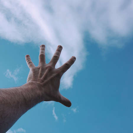 Hand reaching towards the sky