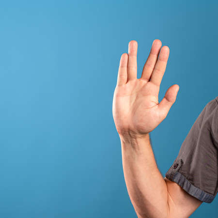 Vulcan salute, greeting from the TV series star Trek, live long and prosper,