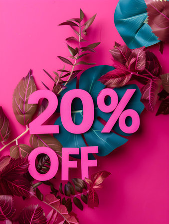 White '20% OFF' Promotional Sign on a Hot Pink Background