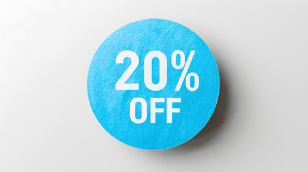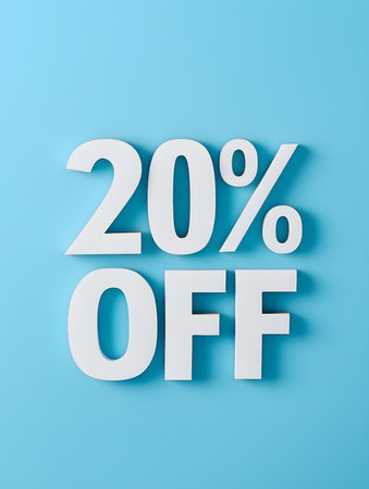 White '20% OFF' Promotional Sign on a Light Blue Background