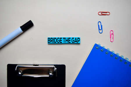 Bridge the Gap text on sticky notes with office desk concept