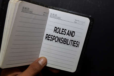 Roles and Responsibilites! write on notebook isolated on black background