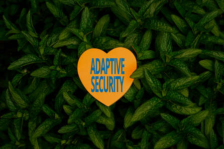 Inspiration showing sign Adaptive Security. Conceptual photo analyzes behaviors and events to protect against threat Heart Shaped Paper On Top Of Outdoor Nature Leafy Plant Bush.
