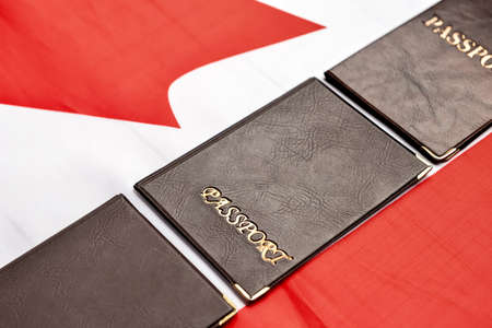 Passports on flag of Canada