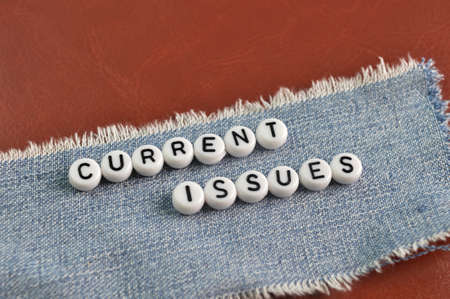 Side view of alphabet beads with text CURRENT ISSUES