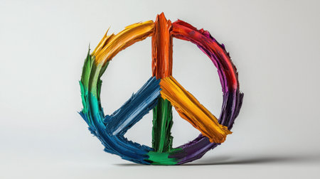 This vibrant peace symbol painted with colorful brush strokes represents harmony and love. Its artistic design is perfect for conveying messages of unity and positivity.