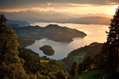 Panoramic view of Lake Lucerne from the top of the mountain, Switzerland