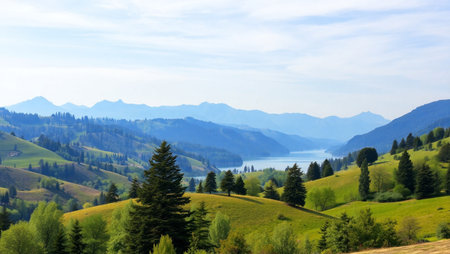 Beautiful view of alps mountain from Rigi Kulm, Switzerland on calm sunny day.