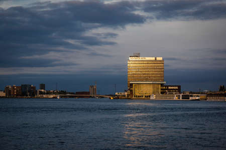 The Dutch capital Amsterdam is in the early morning. The sun rises. Netherlands