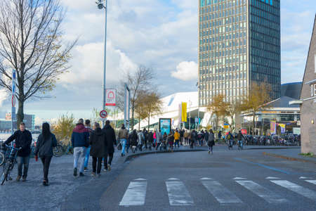 Amsterdam, The Netherlands, October 11, 2018: walking squre crowded with people in front of Rijks museum