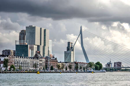Rotterdam, Netherlands, October 13, 2019. Willem bridge against Rotterdam cityscape