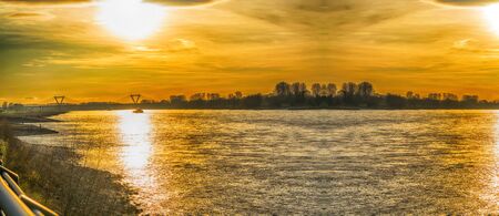 Panorama of the Maastricht Waterfront on the Meuse Maas river, in autumn. High quality photo