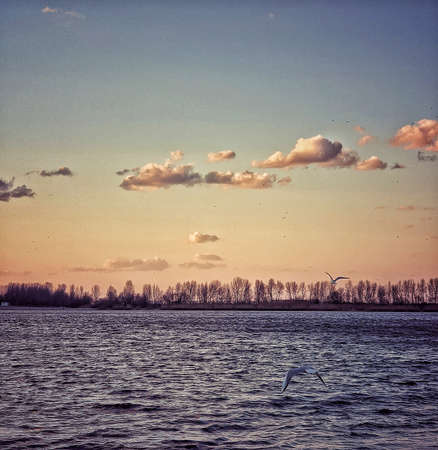 The harbor from Woudrichem at the river Merwede at sunset in the Netherlands