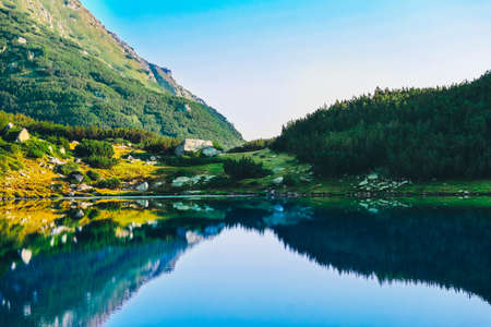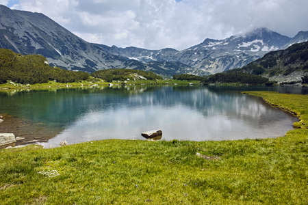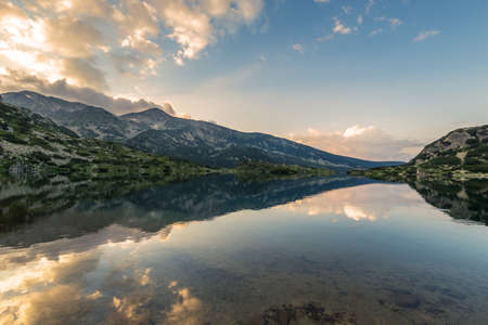 Popovo lake at Bezbog, Bulgaria and mountains reflection at summer.