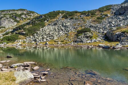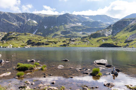 Landscape with Stones in the water in small Lake, Rila Mountain, Bulgaria