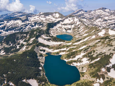 Amazing Aerial view of Kremenski lakes and Dzhano peak, Pirin Mountain, Bulgaria