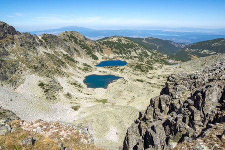 Panoramic landscape of The Seven Rila Lakes, Rila Mountain, Bulgaria
