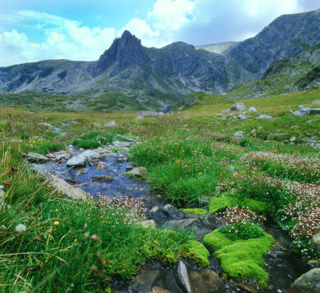 Amazing Landscape with Muratov Peak and Mountain River, Pirin Mountain, Bulgaria.