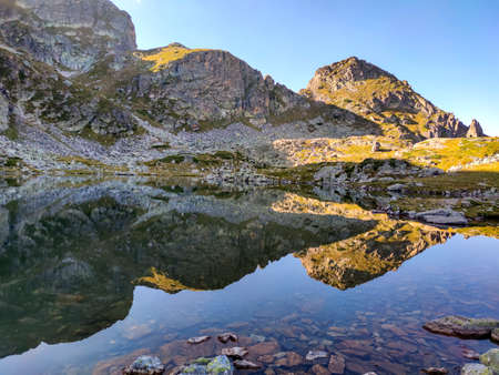 Amazing Autumn landscape of Rila Mountain near Mechit and Popova Kapa peaks, Bulgaria