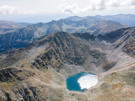Amazing Aerial view of Kremenski lakes and Dzhano peak, Pirin Mountain, Bulgaria