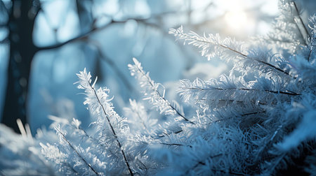 Stunning Frozen Landscape with Intricate Ice Crystals on Winter Foliage in a Serene Atmosphere