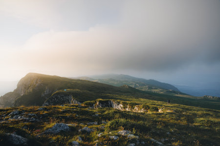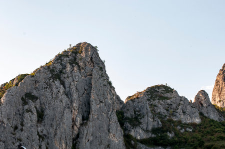 mist over limestone ridge in Tureni gorges, a protected area in Transylvania
