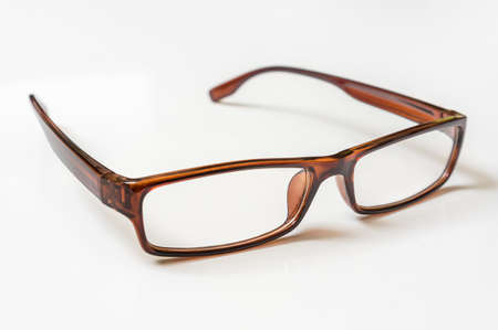 Modern brown eyeglasses isolated on white background