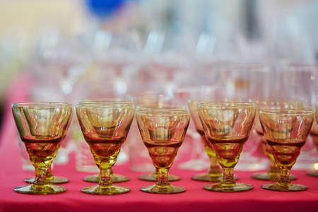 empty glasses on a banquet table close-up