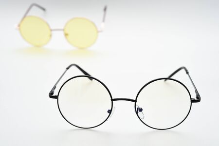 Eye glasses isolated on yellow background. High quality photo