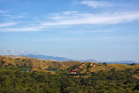 Komodo Island in Indonesia, sea bay, lake and mountains. View of the sea from the mountain
