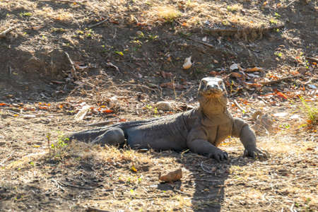 Komodo dragon. Scientific name: Varanus Komodoensis. Natural habitat. Indonesia. Rinca Island.