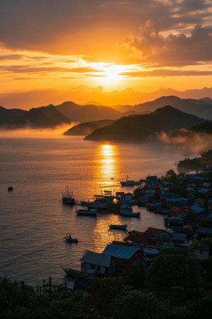 Sunrise scene in the seaside fishing village
