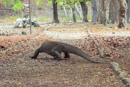 Komodo dragon walking in Komodo island