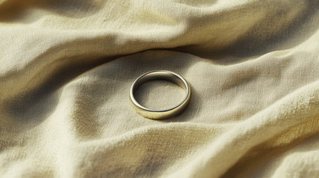 Stunning image of a golden ring placed on a soft fabric, highlighting its unique design and smooth surface, perfect for luxury jewelry promotion or presentations.