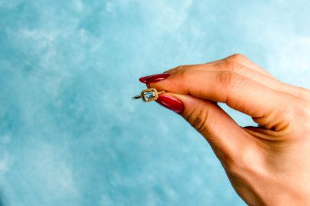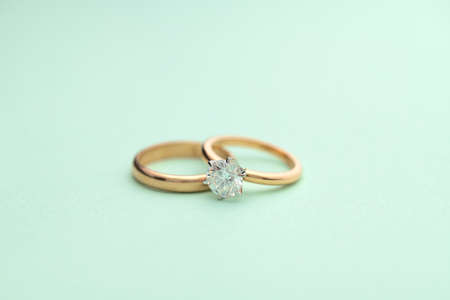 Gold Engagement Diamond Ring on Tiffany Color Background