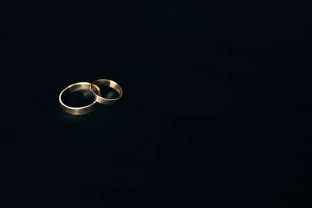 wedding rings on a black stone background, close-up