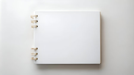 Clean and minimalist. this mockup features a blank white binder with a gold coil binding. Perfect for showcasing branding. logos. or notes.