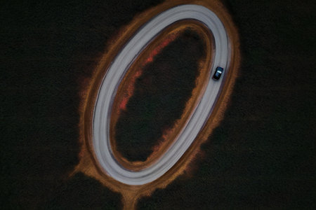 Aerial top down view of a road forming a circle. Nowhere to run, running in circles concept. Generative AI.