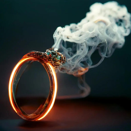 wedding ring with smoke on a dark background close-up