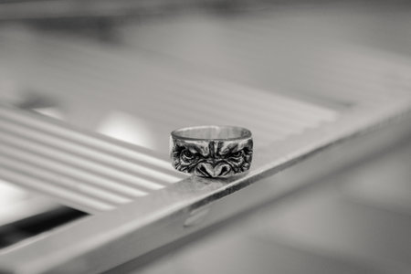 Ape shape silver ring on abstract background
