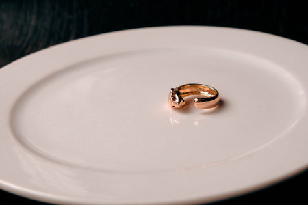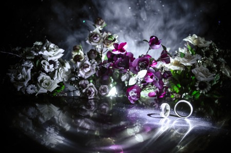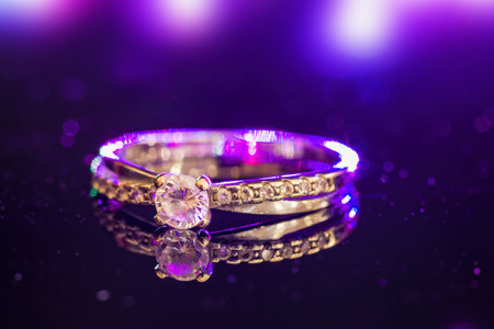 wedding ring on a dark background with bokeh effect