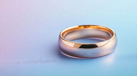 Wedding ring on blue background with copy space for text.