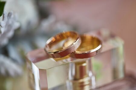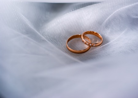 two golden wedding rings in the celebration day