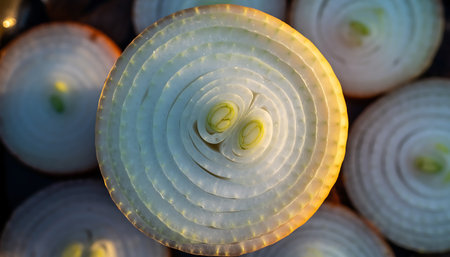 Tangy Red sliced onion. Plant fresh. Generate Ai