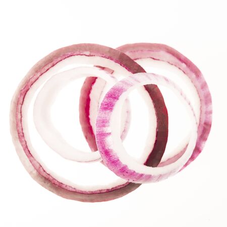 Fresh slice of red onion on white background