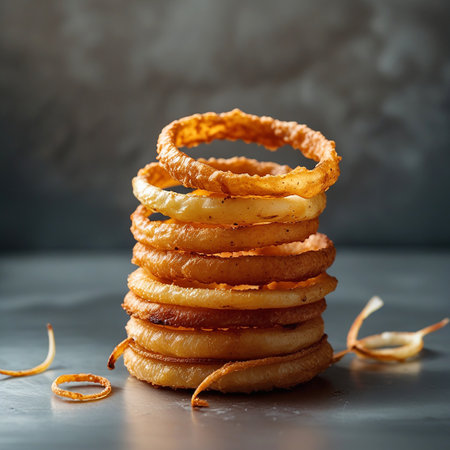 AI Generated. Crispy Onion Rings Stack Fried Food Closeup Appetizer Snack
