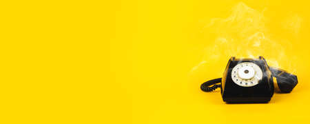 Old retro phone black and woman's hand closeup, call on the phone, technology